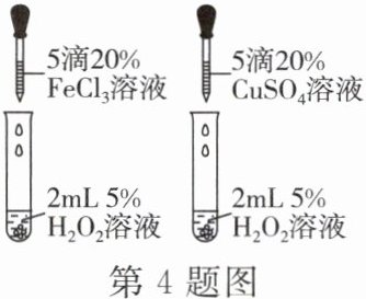 (4)通过查阅资料,他们还发现许多金属盐(如FeCl₃、CuSO₄等)对双氧水的分解具有催化作用。那么,铁盐和铜盐的催化作用哪个强呢?他们设计了如图所示的实验,并以两支试管中产生气泡的快慢来判断结果,小宁同学提出将CuSO₄溶液改为CuCl₂溶液更合理。仿照小宁的思路,你认为还可以作何改进:。