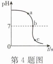 4. 某校科学小组在利用盐酸和氢氧化钾溶液探究酸碱中和反应时,将一溶液逐滴滴加到盛有另一溶液的烧杯中,利用数字化传感器测得烧杯中溶液pH的变化图像如图所示。