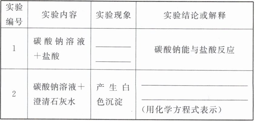 碳酸钠在工业生产中有广泛的用途,我国化学家侯德榜创立了侯氏制碱法,为世界制碱工业作出了突出贡献。兴趣小组的同学在学习了碳酸钠性质后,做了如表所示的2个实验: