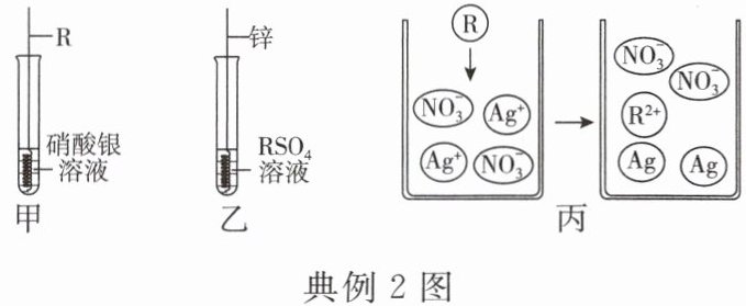 ,写出图甲实验中发生的化学反应方程式:R+2AgNO₃=R(NO₃)₂+2Ag