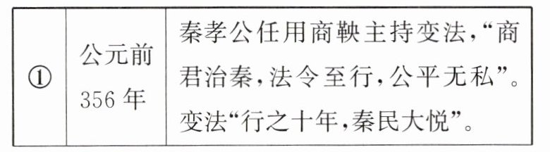 (2)阅读材料二,任选表中两件史事,说明其与秦实现统一之间的因果联系。