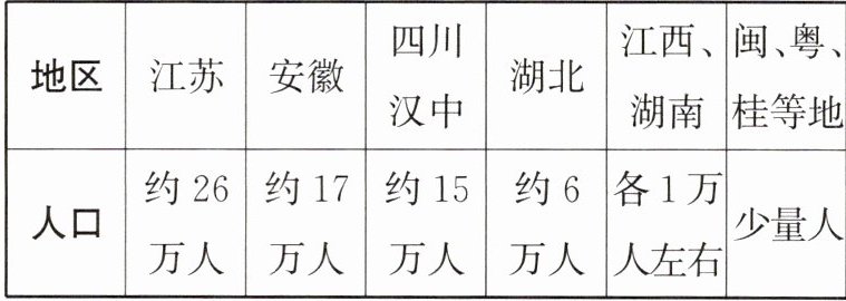5. 下表为公元313—450年从北方地区迁到南方地区的人口分布情况。据此可知( )