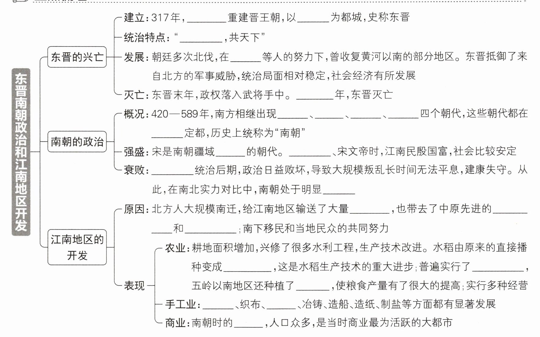 司马睿 建康 王与马 祖逖 420 宋 齐 梁 陈 建康 最广 宋武帝 梁武帝 劣势 劳动力 生产工具 生产技术 育秧移栽 麦稻兼作 双 季稻 缫丝 制瓷 建康