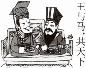 1.B 解析:根据“王与马,共天下”可知,该漫画与东晋有关。317年,司马睿重建晋王朝,以建康为都城,史称东晋。其举行即位大典时,邀请王导共坐御床,时人称之为“王与马,共天下”。这反映了东晋时期世家大族与司马氏共天下的政治格局,故选B项。