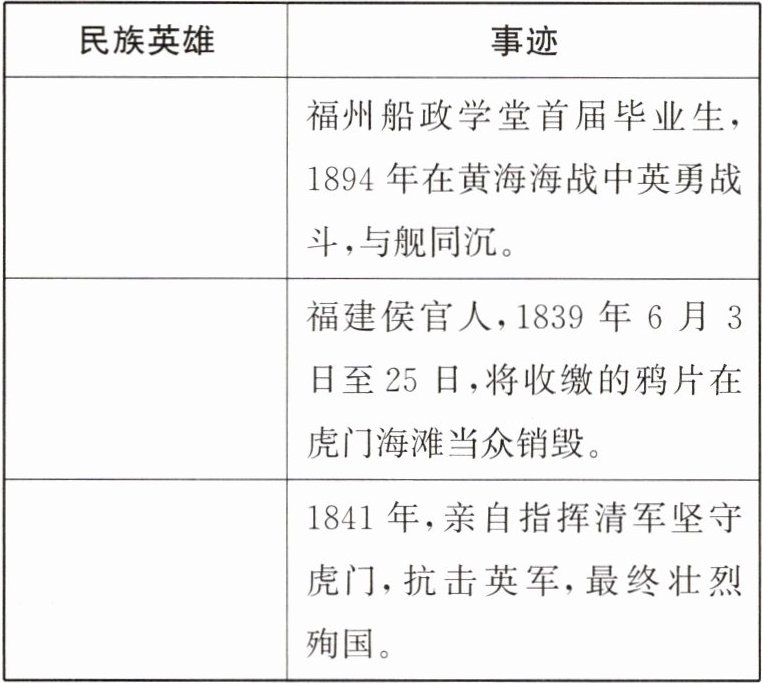 (2)请将材料二中三位民族英雄与其事迹对号入座。