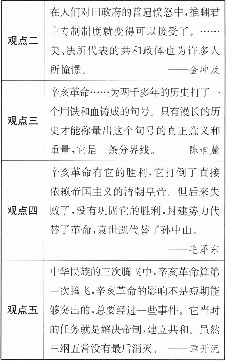 材料 下面是一些历史学家或伟人评价辛亥革命的观点。