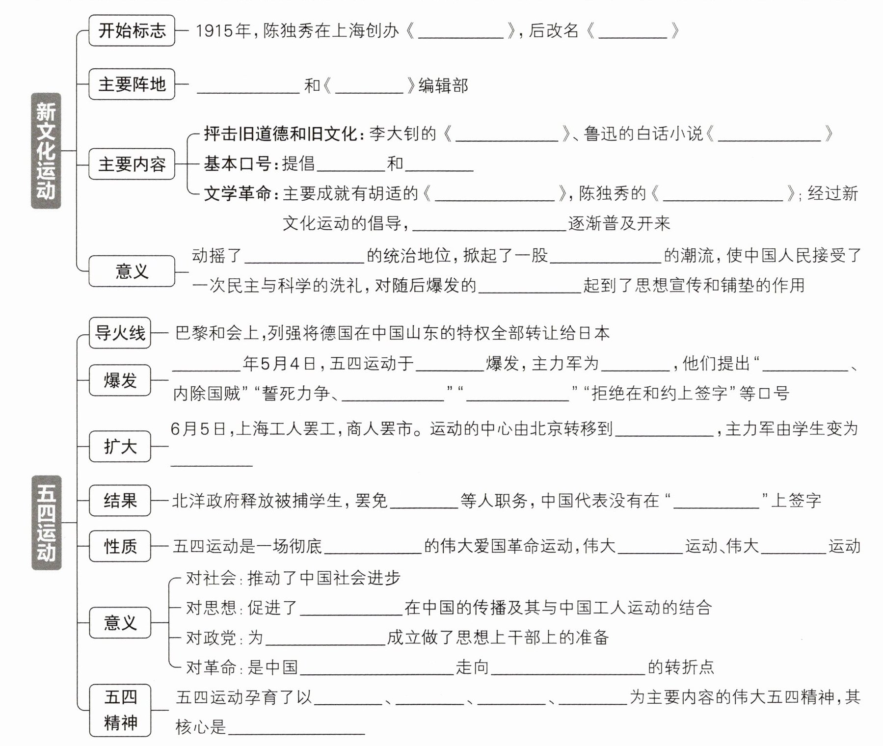 青年杂志 新青年 北京大学 新青年 孔子与宪法 狂人日记 民主 科学 文学改良刍议 文学革命论 白话文和新文学 封建道德礼教 思想解放 五四运动 1919 北京 学生 外争主权 还我青岛 取消二十一条 上海 工人阶级 曹汝霖 巴黎和约 反帝反封建 社会革命 思想启蒙 马克思主义 中国共产党 旧民主主义革命 新民主主义革命 爱国 进步 民主 科学 爱国主义精神