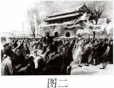 (2)任务二:辨图知史。写出图二事件的发生时间及其性质,并分析材料中“先进知识分子与工人群众相结合”的历史影响。