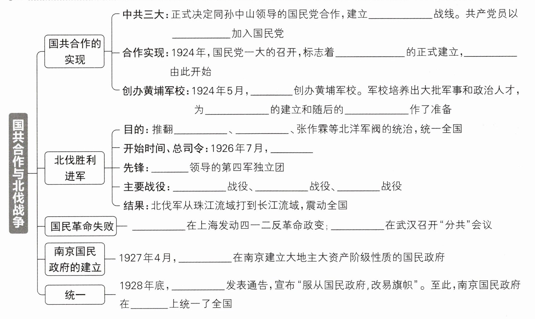 革命统一 个人身份 国共两党合作 国民革命 孙中山 国民革命军 北伐战争 吴佩孚 孙传芳 蒋介石 叶挺 汀泗桥 贺胜桥 武昌 蒋介石 汪精卫 蒋介石 张学良 形式