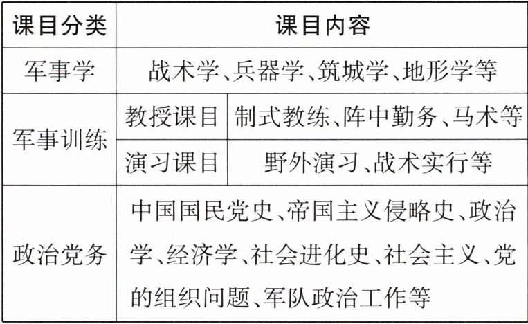 3. 下面是黄埔军校课程的安排简表。由此可知,黄埔军校( )