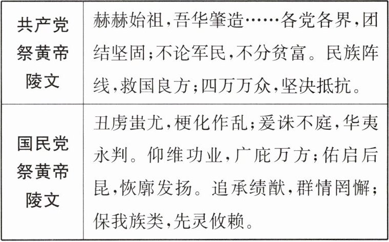 1. 1937年4月5日,国共两党首次在同一地点、同一时间来祭拜黄帝,并发表祭黄帝陵文。祭文反映出( )