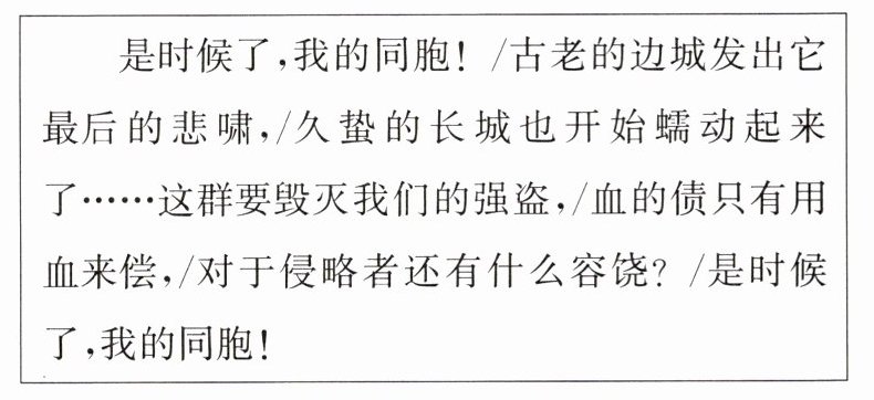 5. 下面是诗人高兰写于1937年7月的诗歌《是时候了,我的同胞!》(节选)。根据诗歌内容可知,该诗歌意在( )