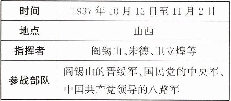 2. 忻口会战是抗日战争时期的重要会战。阅读下表,忻口会战突出反映了( )