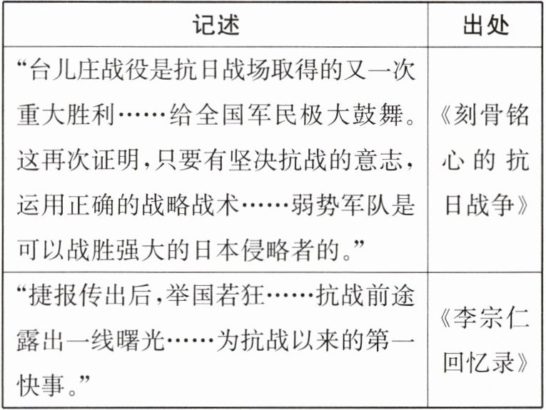 3. 下表为不同史籍对台儿庄战役的历史记述。根据“孤证不立”(只有一个例子不能证明某件事情成立)的史学研究方法,能够被认定的共同历史事实是台儿庄战役( )