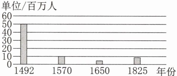 5. (2024·江苏苏州)下图是拉丁美洲土著人口(1492—1825 年)统计情况。拉美土著人口锐减的悲剧始于( )
