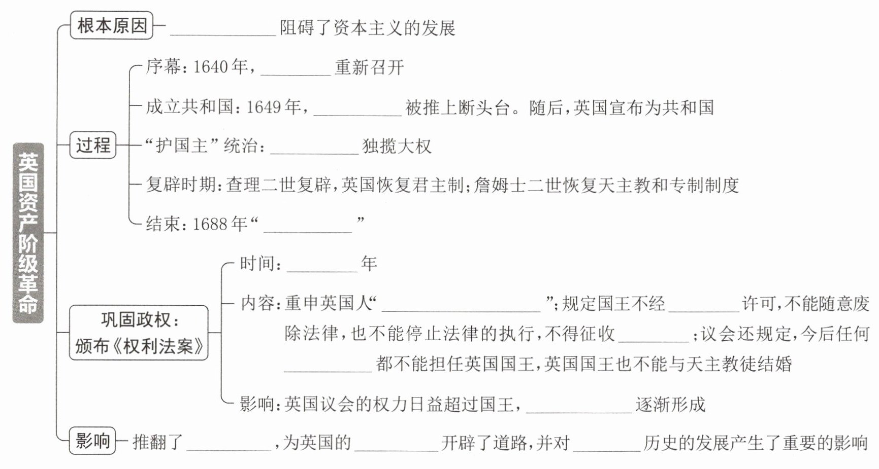 3. 有学者认为,1688年的“光荣革命”没有流血,过程不像一场革命,结果却是地地道道的革命,更完成了1640年以来未完成的历史任务。材料中的“历史任务”是指( )