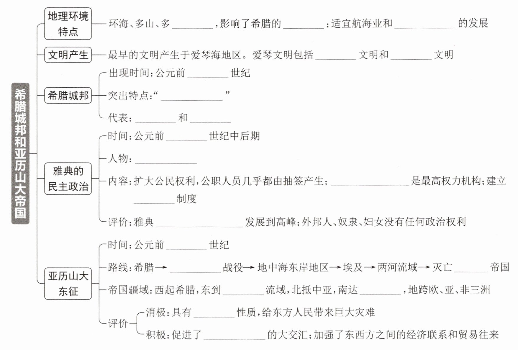 路线:希腊→伊苏斯平原战役→地中海东岸地区→埃及→两河流域→灭亡波斯帝国