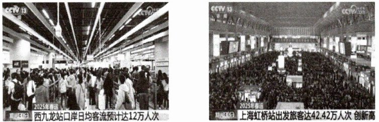 图景二 2025年1月25日,上海火车站出现客流高峰,其中,虹桥站出发旅客达42.42万人次,创历史新高。