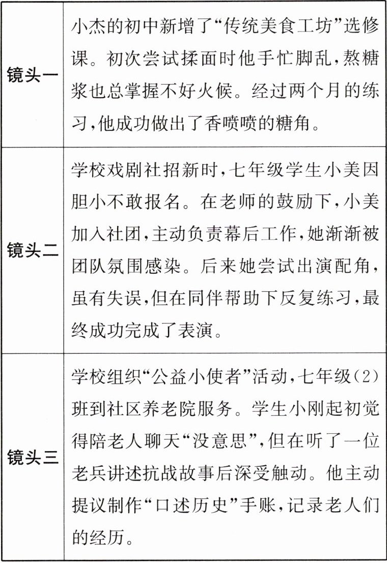 8. 初中这段生命旅程给了每个人自我发展的无限可能。下面是某班同学的初中生活镜头。