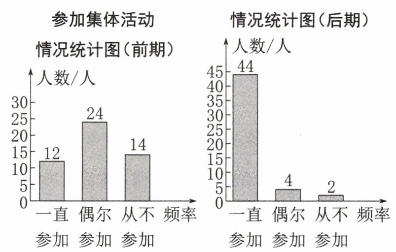 老师展示了两幅同学们参加集体活动情况的统计图: