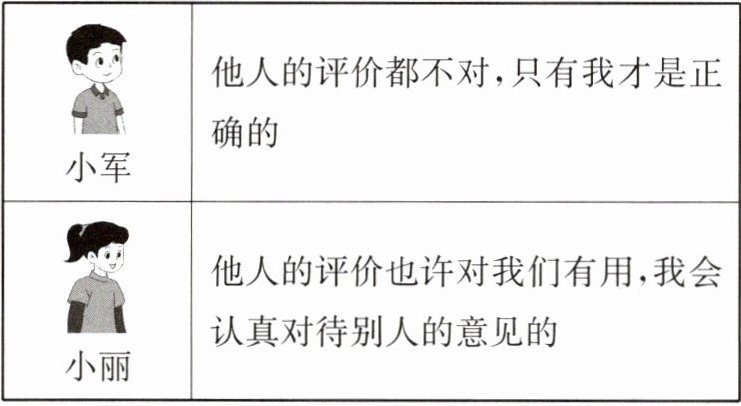 (2)讨论会上,针对“如何对待他人的评价”,同学们发表了不同的看法,你同意以下谁的观点?说说你的理由。