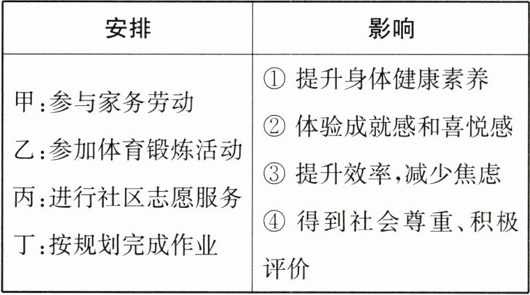 4. 丰富多彩的寒假生活即将到来。下列对假期生活的安排及其产生的影响推导完全正确的是( )