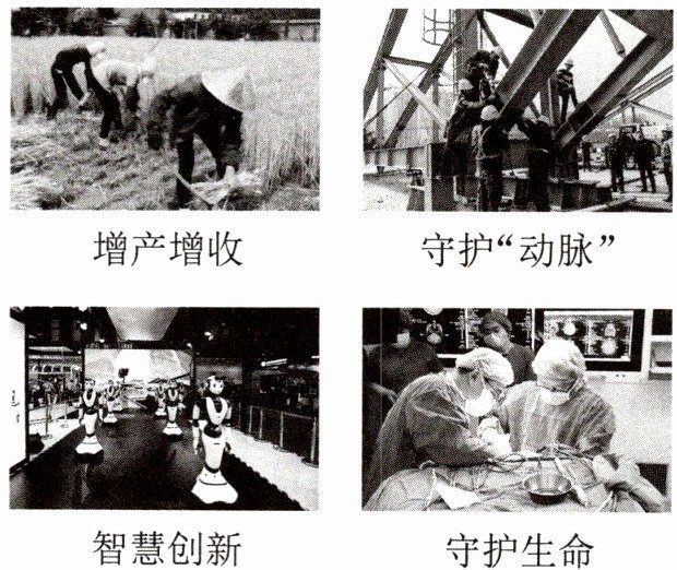 5. 某校开展劳动周主题海报征集活动,下面是某张海报上的一组宣传图,其意在说明( )