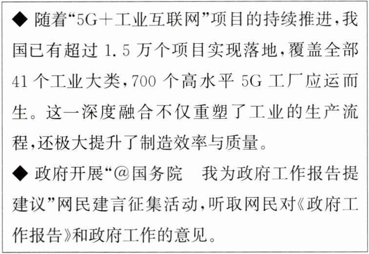 (2)①网络推动了生产方式的深刻变革。网络促进人才、资金、技术、物资的流动,不断催生新产业、新业态、新模式,推动传统行业转型升级,提升经济发展水平。②网络改进了社会治理方式。网络畅通人们参与社会治理的渠道,有助于人们表达诉求,保障人们的知情权、参与权、表达权和监督权,促进民主政治的进步。