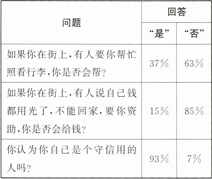 12. “发现问题→分析问题→解决问题”是我们思考问题的一般路径。以下是中学生对社会的诚信现状进行调查得到的数据: