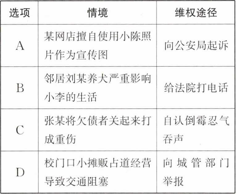 5. (2024·邳州期中)以下四个情境中采取的维权途径,正确的是 ( )