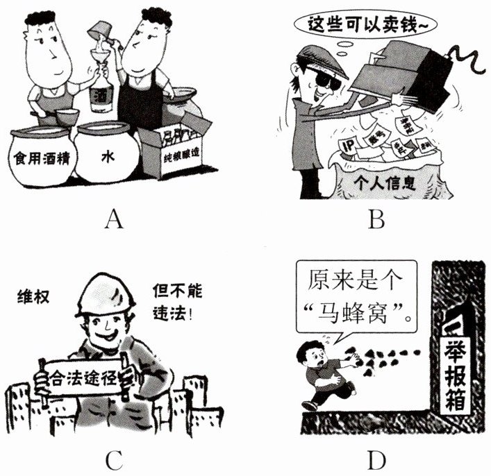 材料二 (2024·新沂期中)社区是社会的基本单元,是人民群众日常生活的主要场所。以下是八年级学生小岩在国庆节假期捕捉到的镜头: