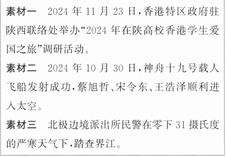 2. (2024·徐州期末)中国核潜艇第一任总设计师彭士禄,隐姓埋名数十年,为祖国造核潜艇,建核电站。生前他常说:“是人民将我养大,我几辈子都还不了,只要祖国需要,我愿贡献一切!”他的事迹告诉我们( )