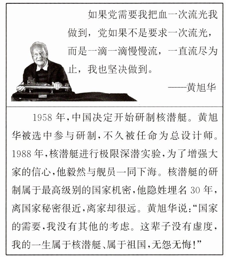 (1)结合黄旭华的事迹,请你谈谈国家利益与个人利益的关系。