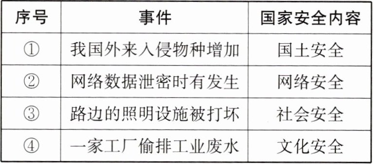 6. 下列事件与涉及的国家安全内容匹配正确的是( )