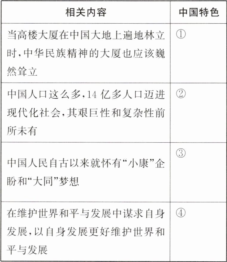(2)请结合中国式现代化的“中国特色”,完成上面表格。