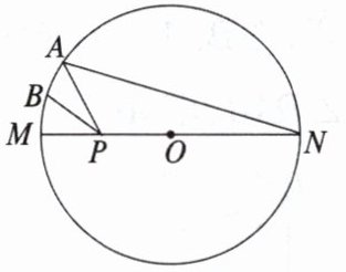 4. 如图,$ MN $ 是 $ \odot O $ 的直径,$ MN = 6 $,点 $ A $ 在 $ \odot O $ 上,若 $ \angle ANM = 20° $,$ B $ 为弧 $ AM $ 的中点,$ P $ 是直径 $ MN $ 上一动点,则 $ PA + PB $ 的最小值为.