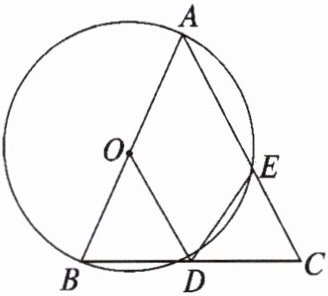 5. 如图,在 $ \triangle ABC $ 中,$ AB = AC $,以腰 $ AB $ 为直径作 $ \odot O $,分别交 $ BC $,$ AC $ 于点 $ D $,$ E $,连接 $ OD $,$ DE $.