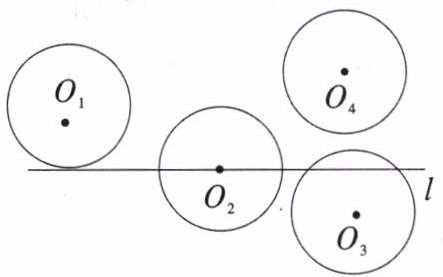 2. 半径为5的4个圆按如图所示位置摆放,若其中有一个圆的圆心到直线$l$的距离为4,则这个圆可以是(