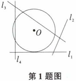 1. 如图,$\odot O$的半径为5,圆心$O$到一条直线的距离为2,则这条直线可能是(