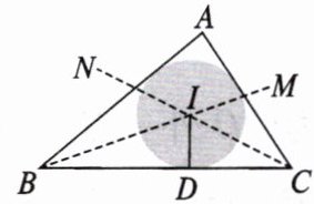 第1步:分别作∠ABC,∠ACB的,两线交于点I;
