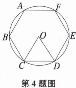 4. 如图,正六边形ABCDEF内接于⊙O,连接OC,OD. 若OC的长度为2cm,则正六边形ABCDEF的周长为