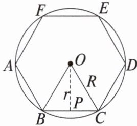 正六边形中心角 $ \theta = \frac{360°}{6} = 60° $,边心距 $ r $ 为中心到边的距离。