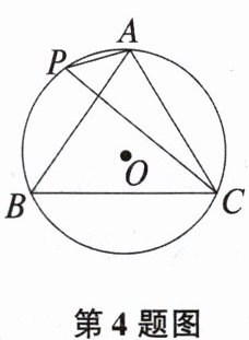4. 如图,若 $ \odot O $ 的半径为 $ 9\sqrt{3} $,$\overset{\LARGE{\frown}}{AB} = \overset{\LARGE{\frown}}{AC}$,$ \angle APC = 60^{\circ} $,$ \angle BCP = 40^{\circ} $,则$\overset{\LARGE{\frown}}{PA}$的长为.