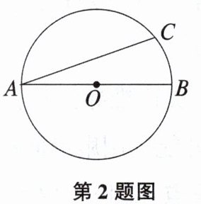 2. 如图,$ AB $ 是 $ \odot O $ 的直径,$\overset{\LARGE{\frown}}{AC} = 3\overset{\LARGE{\frown}}{BC}$,则 $ \angle BAC $ 的度数为().
