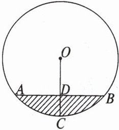 3. 已知水平放置的半径为 $ 6 \, cm $ 的球形容器中装有溶液,容器内液面的面积为 $ 27\pi \, cm^2 $.如图是该球体的一个最大纵截面图,则该截面 $ \odot O $ 中阴影部分的弧长为().