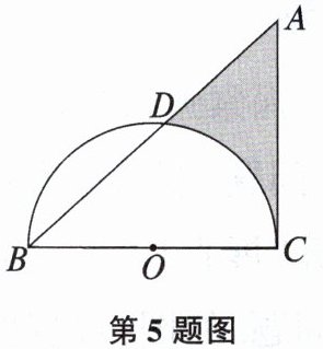 5. 如图,在 $ Rt \triangle ABC $ 中,$ \angle ACB = 90^{\circ} $,$ AC = BC = 4 $,以 $ BC $ 为直径作半圆 $ O $,交 $ AB $ 于点 $ D $,则阴影部分的面积是.