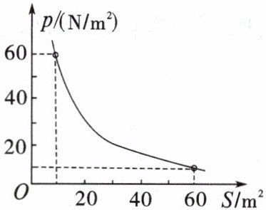 2. 某人对地面的压强与他和地面接触面积的函数关系如图所示。若某一沼泽地的地面能承受的压强不超过300N/m²,那么此人必须站立在面积()的木板上才不至于下陷(木板的重量忽略不计)。