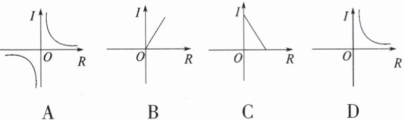 3. 在公式I=$\frac{U}{R}$中,当电压U一定时,电流I与电阻R之间的函数关系可用图象大致表示为()。