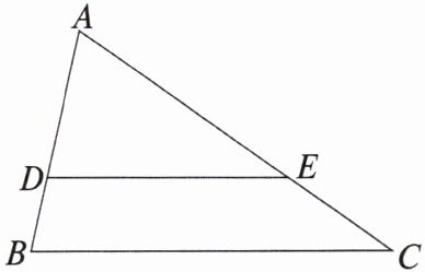 ∴△ADE∽△ABC(平行于三角形一边的直线和其他两边相交,所构成的三角形与原三角形相似)。