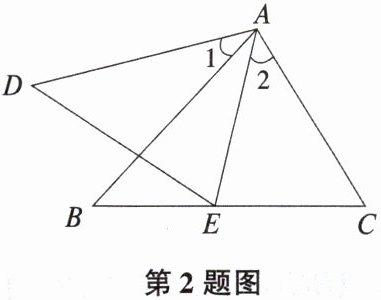 2. 如图,已知∠1 = ∠2,添加下列条件后,仍无法判定△ABC∽△ADE。这个条件是(